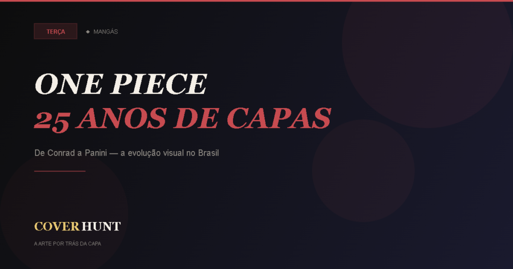 De Conrad a Panini, das lombadas finas às edições 3-em-1: como as capas de One Piece mudaram junto com o mercado brasileiro de mangás.